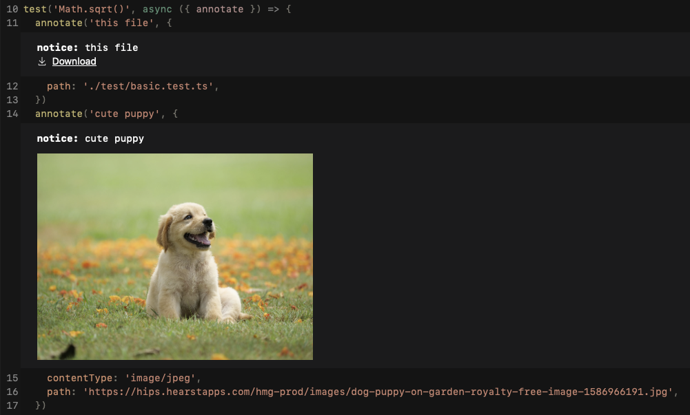 新的 注释 API 允许你为任何测试添加自定义消息和附件。这些注释在 UI、HTML、junit、tap 和 GitHub Actions 报告器中可见。如果测试失败,Vitest 还会在 CLI 中打印相关注释。